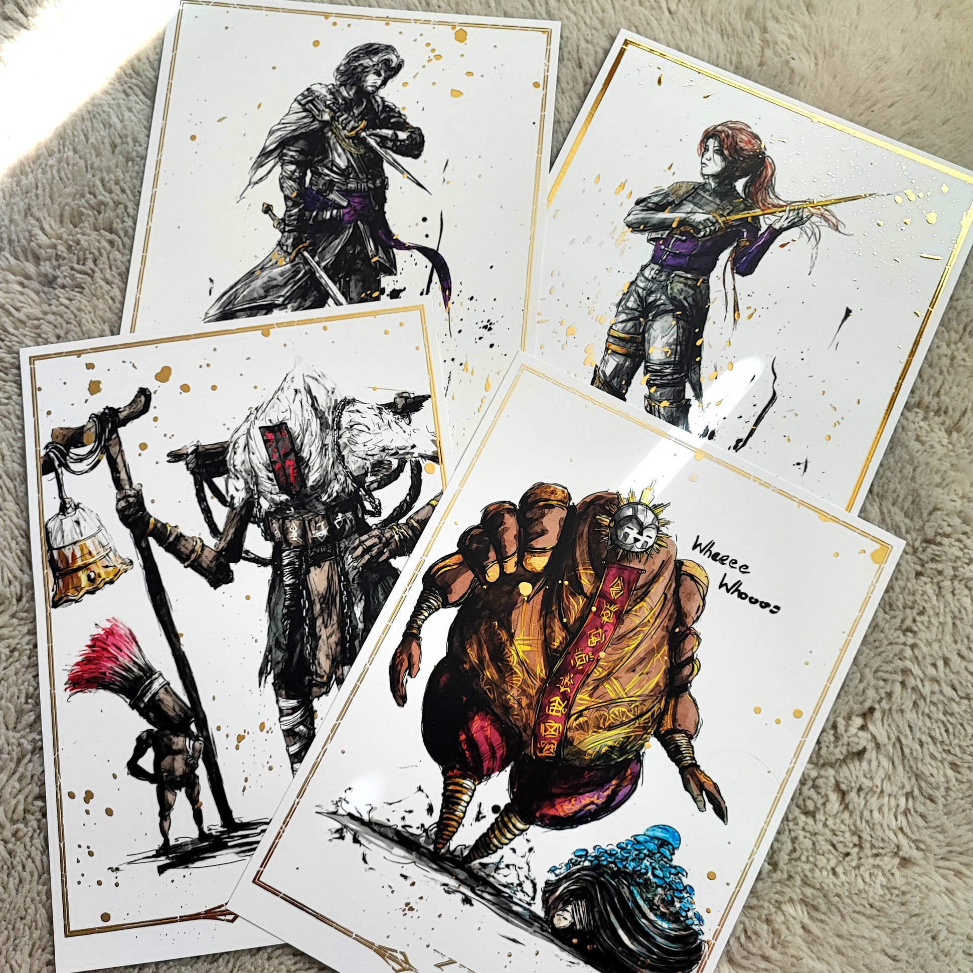 Featuring a set of 4 prints (Verso, Maelle, Esquie, Monoco) from Clair Obscur: Expedition 33! This is the limited gold foil version that won't be reprinted once sold out.