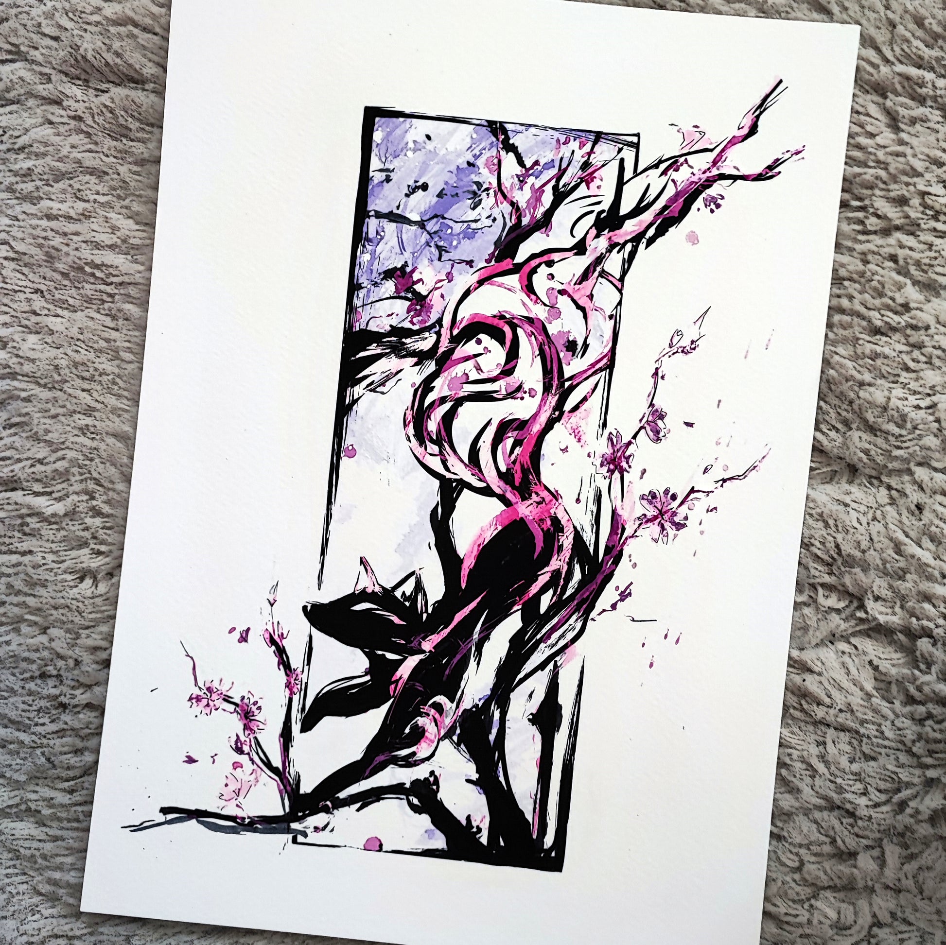 An original piece featuring a mix of ink and wash, this piece comes in 2 possible print finishes - traditional matte fine art and silk "wet ink" gloss version, please see photos!
